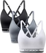 ANGOOL Strappy Sports Bras for Women, Longline Medium Support Yoga Bra Wirefree Padded Sports Bra with Adjustable Straps