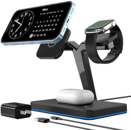 Wireless Charger with MagSafe, 3-in-1 Charging Station for Apple Devices, Magnetic Stand for iPhone 15/14/13/12 Series, iWatch Ultra/SE/9/8/7/6/5/4/3/2 Series, AirPods 3/Pro/2