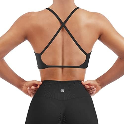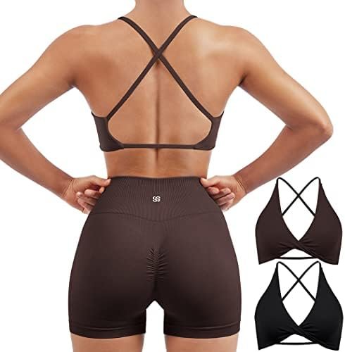 SUUKSESS Women 2 Piece Open Back Strappy Sports Bra Pack Twist V Neck Workout Crops