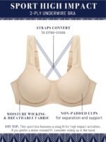 Vanity Fair Women’s High Impact Sports Bras for Women, Breathable, Moisture Wicking, Non Padded Cups up to DDD